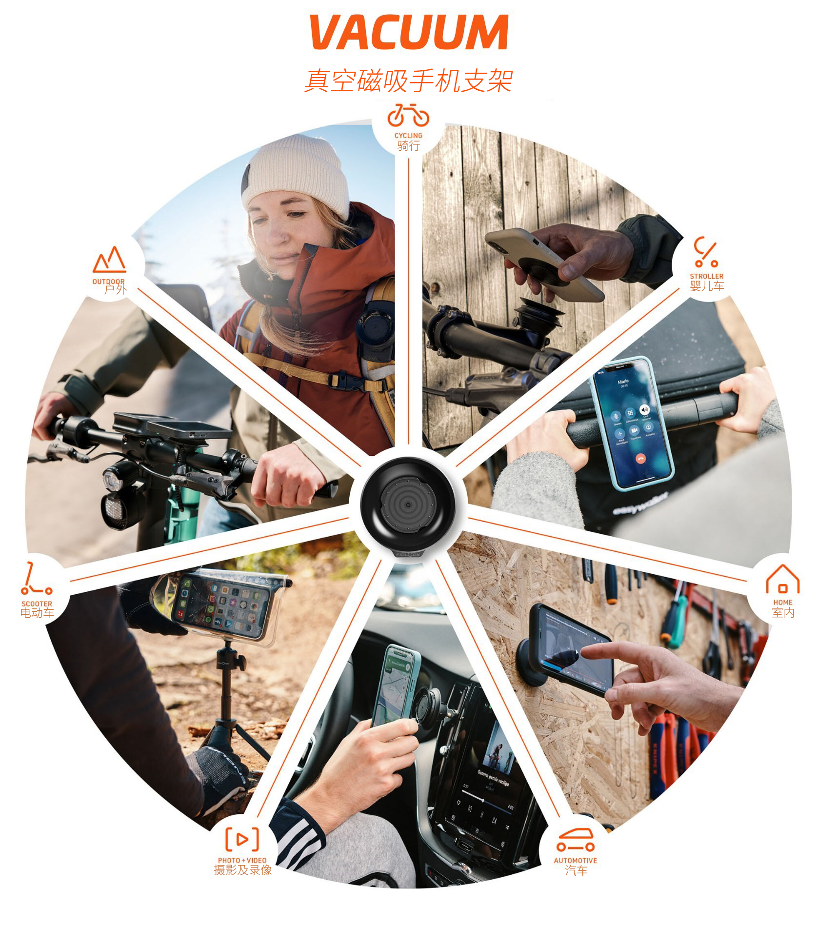 这些配件中包括FIDLOCK VACUUM真空磁吸手机支架,让用户可以轻松、直观地单手将手机在轮椅上拿取和放置,操作十分便捷。